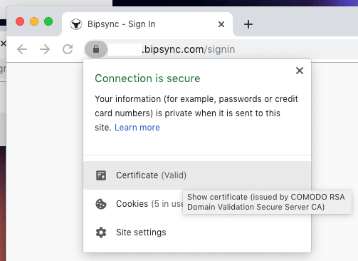 To do this please send us a screenshot of the certificate information window that pops up after you click this option in Chrome at your Bipsync signin page:
