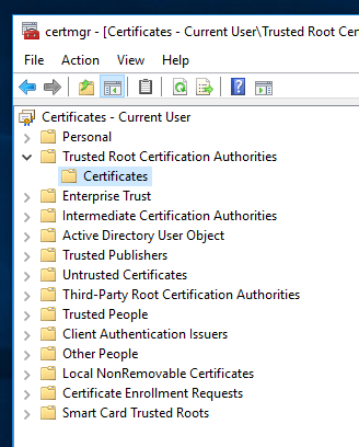 certutil.exeprogram (available from Certificate Services) (you can verify this by runningcertutilfrom the command prompt as the user that will be running the app) - Your trusted root certificate will need to be stored here: