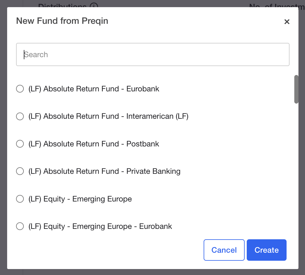 - You will see a dialog appear allowing you to search through Preqin data: