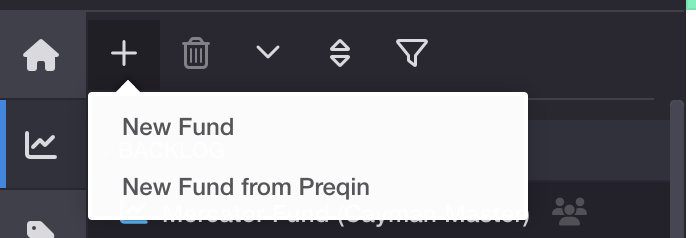 - Navigate to the type of entity you'd like to create (fund, fund manager or contact).
