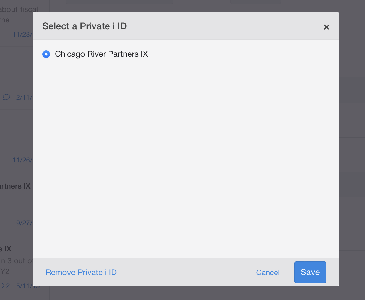From the dashboard menubar, click the "Private i" button to open this dialog:
