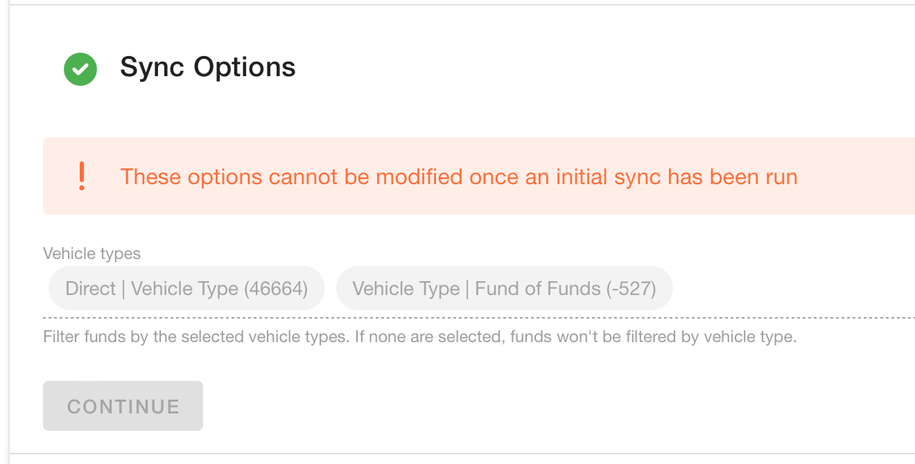 Create missing Bipsync entities during initial sync?If you're a new Bipsync customer, you'll probably want to check this option. If you do so, when we sync Fund Managers, Funds and Asset Classes from Private i for the first time, we'll automatically create matching entities in Bipsync which are linked to those in Private i.