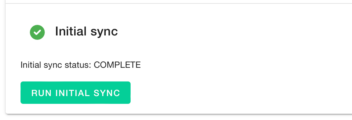 This screen configures the main sync process, within the Configuration and Onboarding sections.