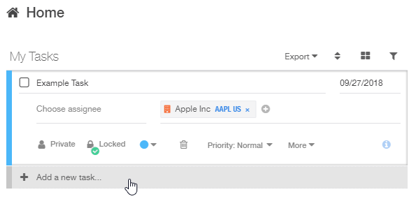 On the homepage, there should be a My Tasks widget. Click + Add a new task and enter all relevant information. You can assign the task to yourself or to other Bipsync users.