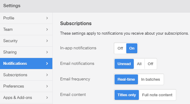 Click on the Bipsync logo in the top left corner of the web app page > go to Settings > Notifications. Here you can modify your notification style, frequency, and content preferences.
