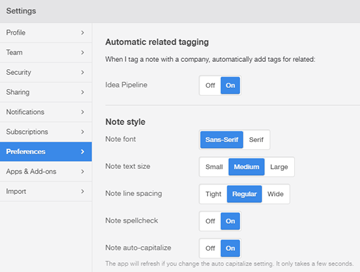 Click the Bipsync logo in the top left corner of the web app page > go to Settings > Preferences.